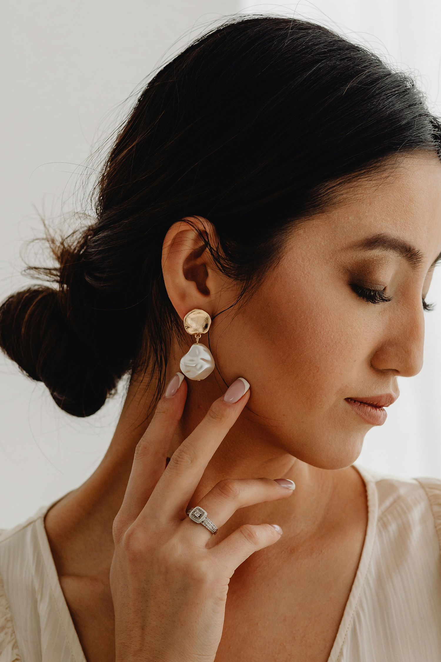 These luminous earrings capture the essence of refined elegance—graceful in form, radiant in finish, and designed to shine with effortless beauty.